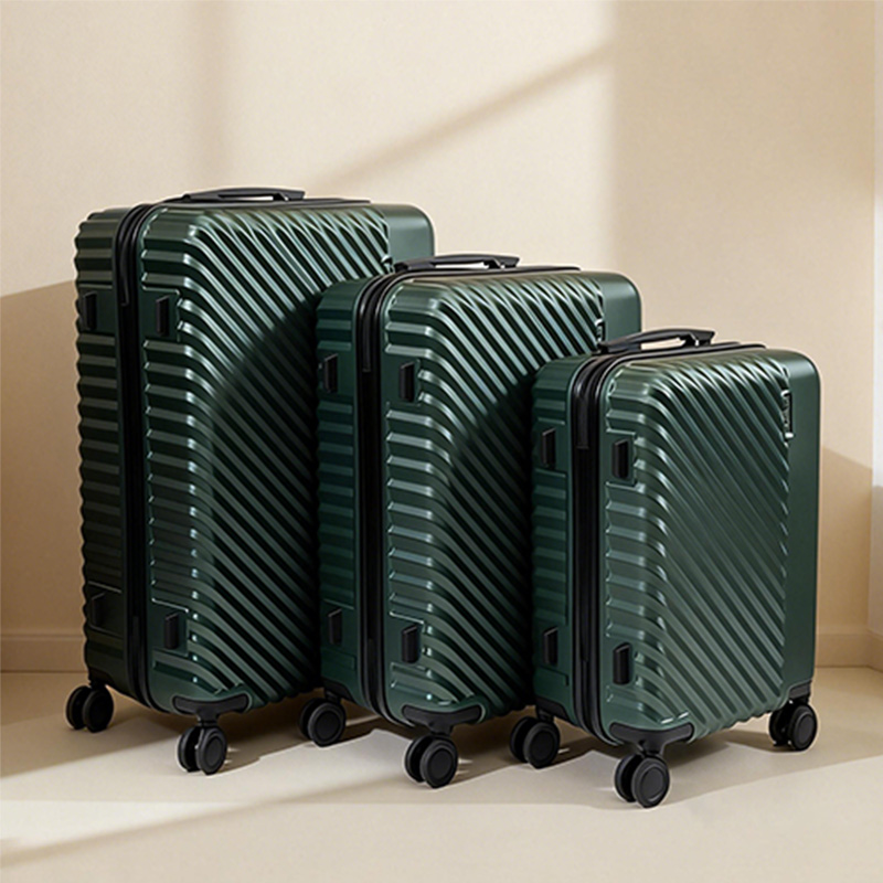 This suitcase is made with ABS engineering material as its core, featuring both strong shock resistance and structural stability. It has been tested to withstand a 1.5-meter drop from a height and violent squeezing during airport luggage handling. It is unlikely to deform or crack even under daily bumps and long-distance transportation. Its durability far exceeds that of ordinary plastic cases, remaining stable and durable for up to three to five years. The box is designed with a unique diagonal texture, which not only enhances its scratch and wear resistance but also gives the appearance a more minimalist and sophisticated feel. The dark green color in the picture has a stable and calm texture, suitable for various outfits.