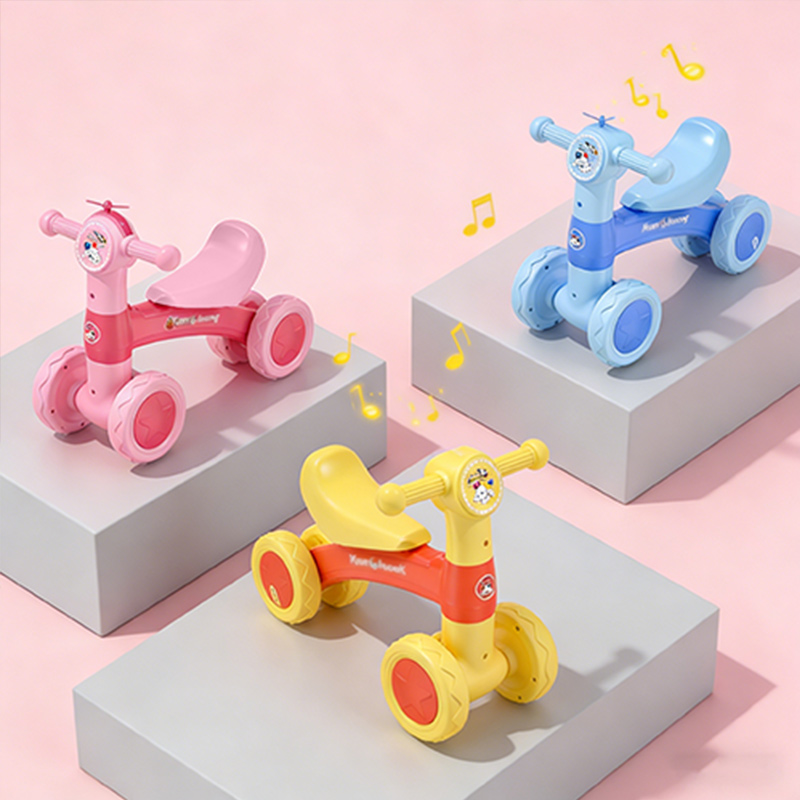 Let the child sit naturally on the seat, hold the handlebars to maintain balance, and push forward alternately with their feet; to turn, steer the handlebars, and lightly touch the ground with the feet to help slow down or stop.