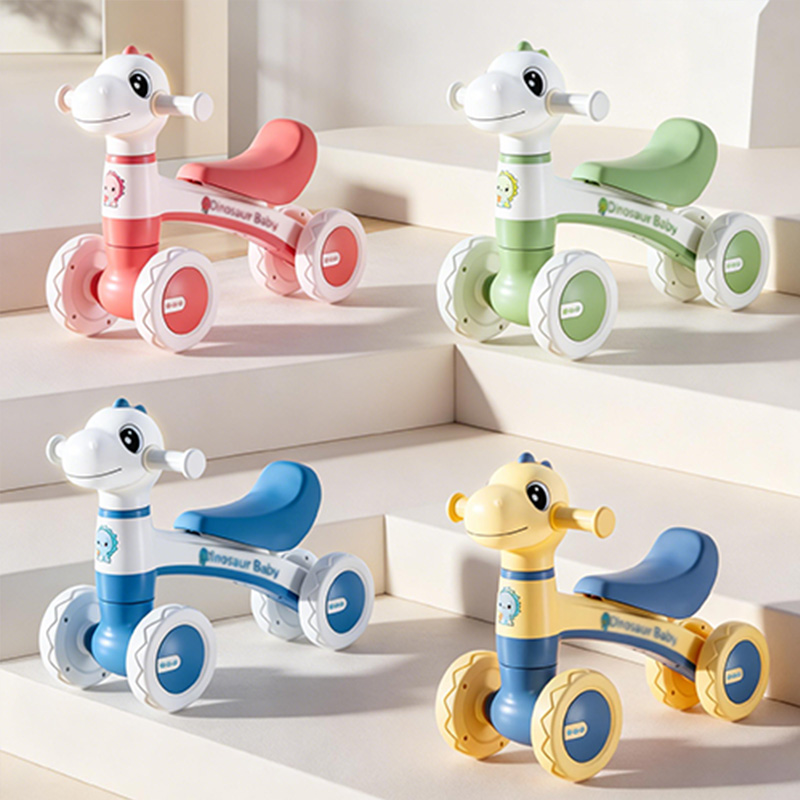 The baby is 1.5 years old and started to walk just when this scooter was purchased. The color combination is truly very gentle. The dinosaur design is extremely cute. The baby rides it around the house every day. The tires are silent, and it doesn’t make any noise when sliding on the wooden floor, nor does it scratch the floor. What reassures me the most is the low center of gravity design. Even when riding very fast, the baby has never fallen off the scooter. It also comes with music and lights. The baby plays while humming along.